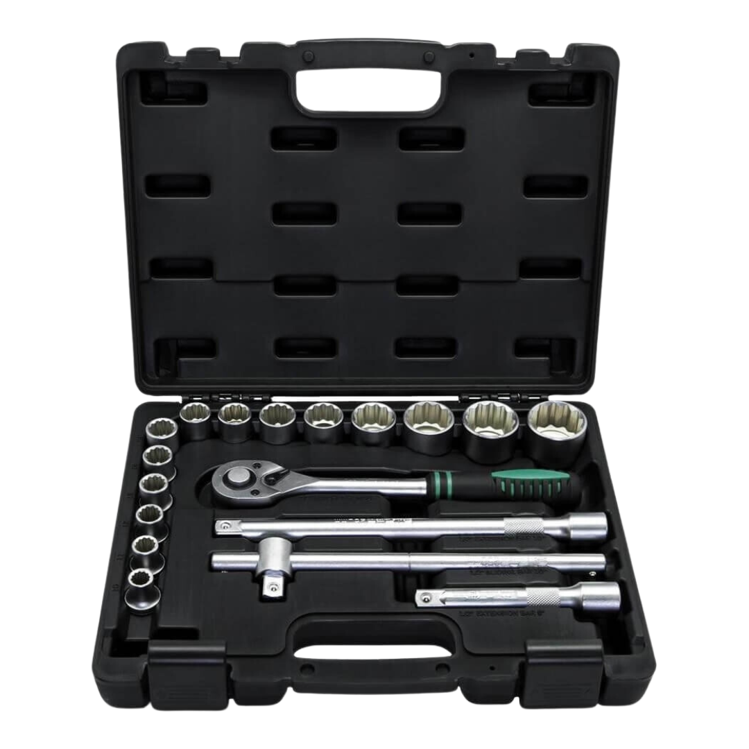 Jogo de Soquetes Estriados 1/2″ com Catraca 18 Peças – STELS 135779